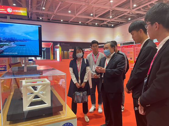 21日,bevictor伟德官网校党委书记罗公利、校长姚庆国、副校长曾庆田、bevictor伟德官网院长乔卫国等领导受邀来到成果展现场,了解了我校十三五期间的创新创业成果以及参展项目。随后,青岛电视台、齐鲁晚报、青岛晚报等多家媒体来到该展位前,对鱼立方项目进行采访报道。