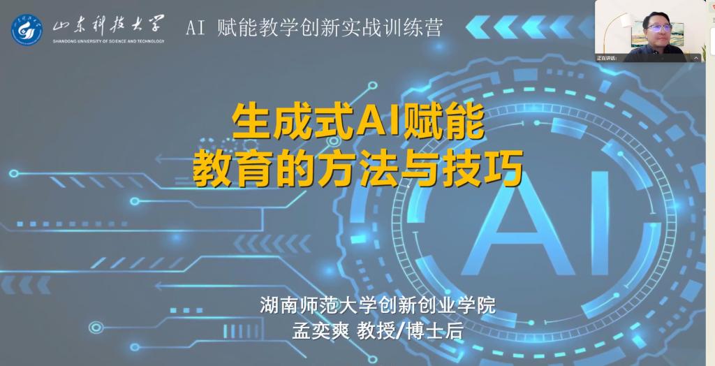 本次训练营以“生成式AI赋能教育的方法与技巧”为主题,聚焦AI技术在教育领域的实际应用。孟奕爽教授围绕AI背景下高等教育的目标与挑战展开讲解,系统解析 AIGC底层逻辑与协同思维,详细介绍了国内外主流AI大模型的特点。培训课程聚焦高效人机协同实践,从教学设计、慕课制作等内容设计环节,到课件、音视频等教学素材制作,再到AI数字人、智能体等前沿工具的开发应用,全方位提升教师的AI实战能力。
